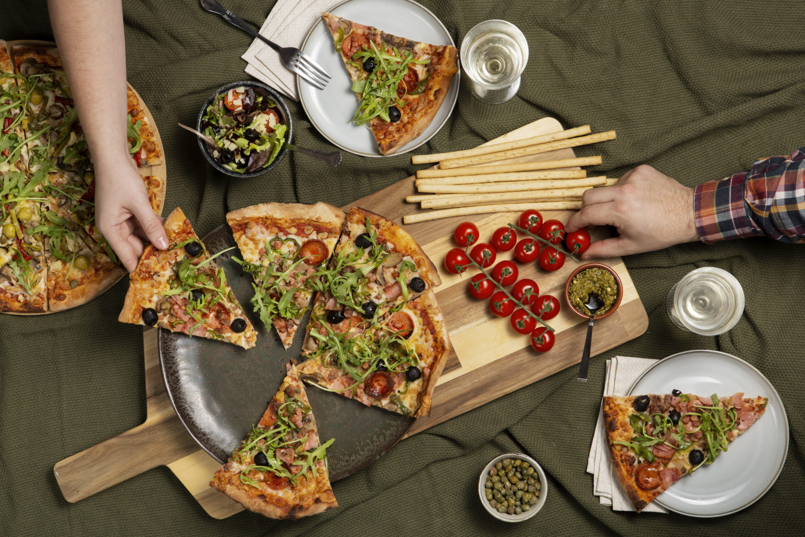 Pizzas estilo montaña con masa crocante—perfectas después de un día de aventura.